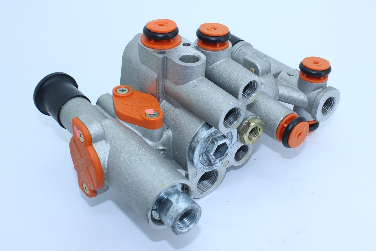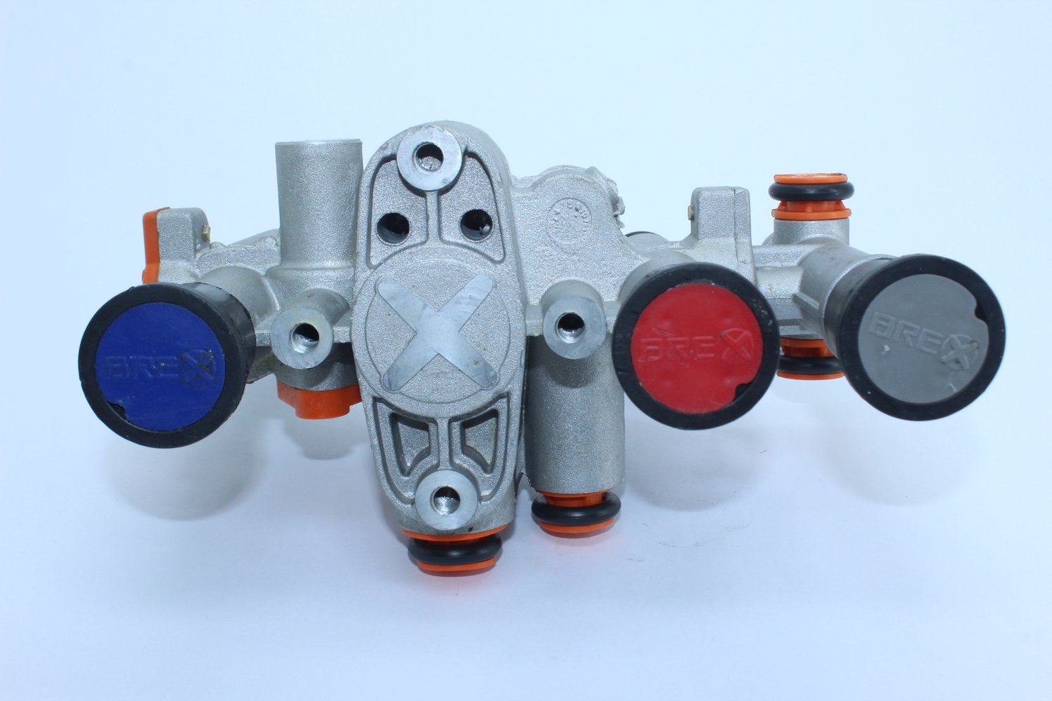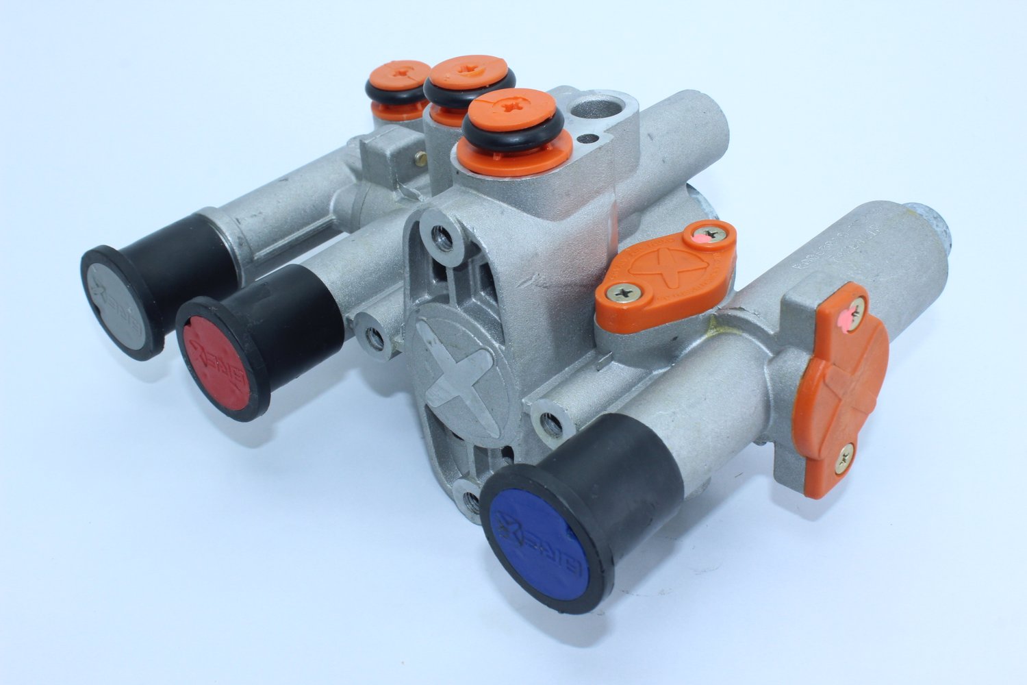 Informação: Sua função é a Desfrenagem, Filtro de linha (By Pass), emergência, estacionamento, proteçãodo Spring-Brake (dupla retenção e exaustão), APS - Automatic Parking System (anti movimentação involuntária do reboque / semi reboque no acoplamento com o veículo trator), reguladora de fluxo (proteção do sistema da suspensão pneumática) e acionamento para um suspensor pneumático.